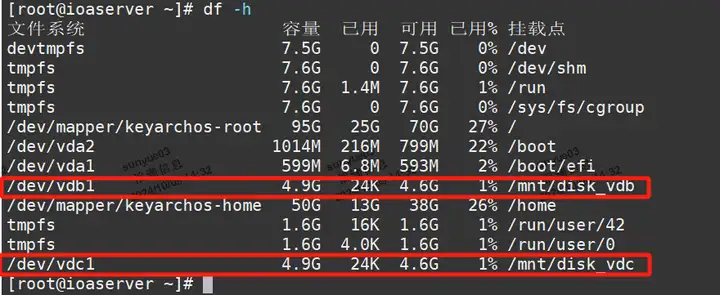 执行mount /dev/vdb1 /mnt/disk_vdb挂载分区