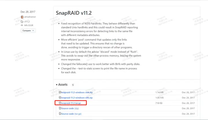 在https://github.com/amadvance/snapraid/releases下载对应版本安装包