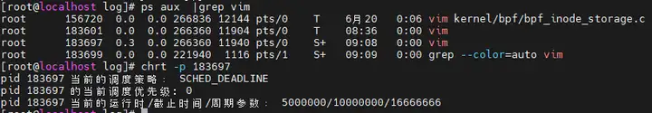 -d参数表示设置的调度策略是Deadline调度器。0为优先级占位符,chrt命令所需,deadline调度器并不使用,其它的对应runtime、deadline和period,单位都是纳秒。通过这样的配置,在每16毫秒的周期内,分配给该任务5毫秒的CPU运行时间,而且这个5毫秒的CPU时间会在10毫秒内的截止时间之前完成。