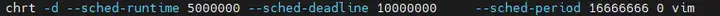 chrt -d --sched-runtime 5000000 --sched-deadline 10000000 \ --sched-period 16666666 0 test_deadline