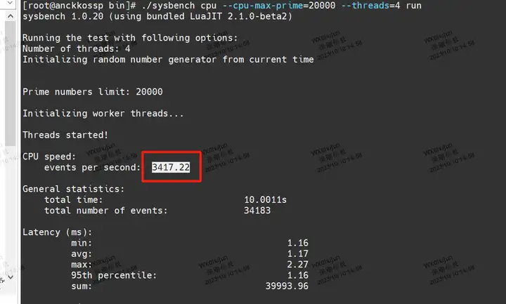 sysbench cpu --cpu-max-prime=20000 --threads=4 run