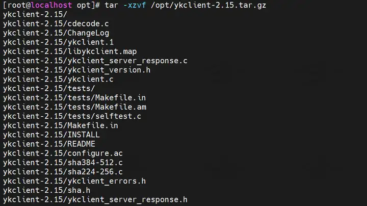 tar -xzvf /opt/ykclient-2.15.tar.gz 进行解压