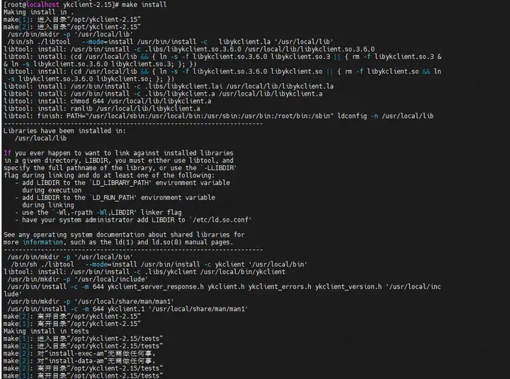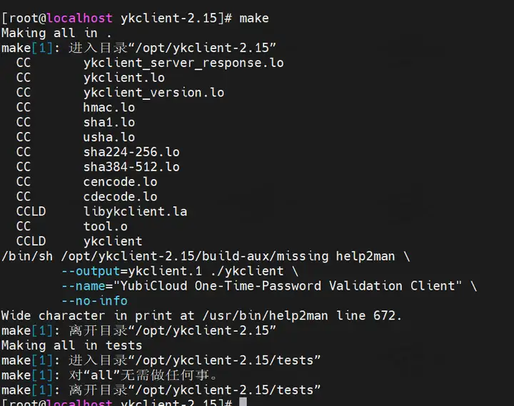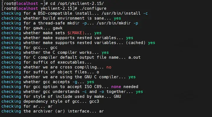 进入 ykclient-2.15目录下,执行“./configure”,运行配置脚本(提前安装libcurl,help2man包,命令:yum install -y libcurl-devel help2man)