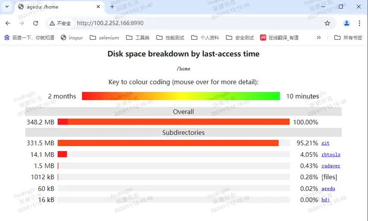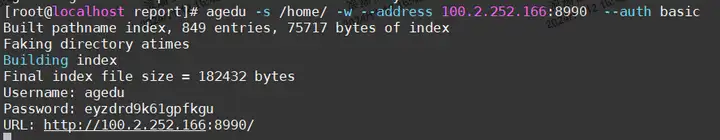 agedu -s /home/ -w --address 100.2.252.166:8990 --auth basic