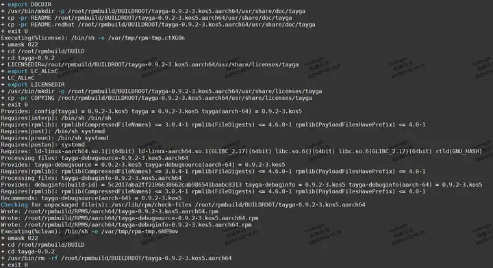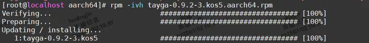 rpm -ivh /root/rpmbuild/RPMS/aarch64/tayga-0.9.2-3.kos5.aarch64.rpm