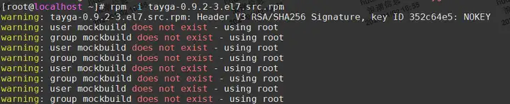 rpm -i tayga-0.9.2-3.el7.src.rpm