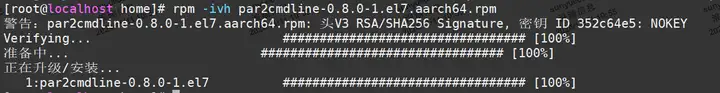 使用rpm -ivh par2cmdline-0.8.0-1.el7.aarch64.rpm安装par2cmdline