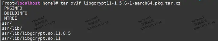 执行tar xvJf libgcrypt11-1.5.6-1-aarch64.pkg.tar.xz解压