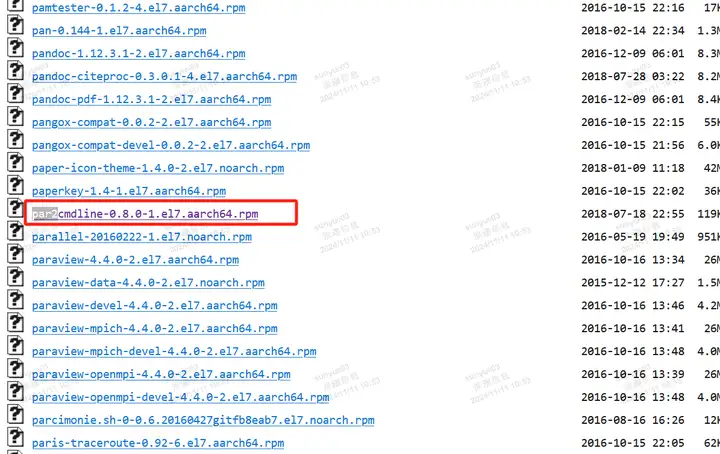 在https://archives.fedoraproject.org/pub/archive/epel/7/aarch64/Packages/p/下载par2cmdline的rpm包