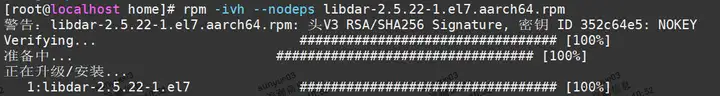 使用rpm -ivh --nodeps libdar-2.5.22-1.el7.aarch64.rpm安装libdar