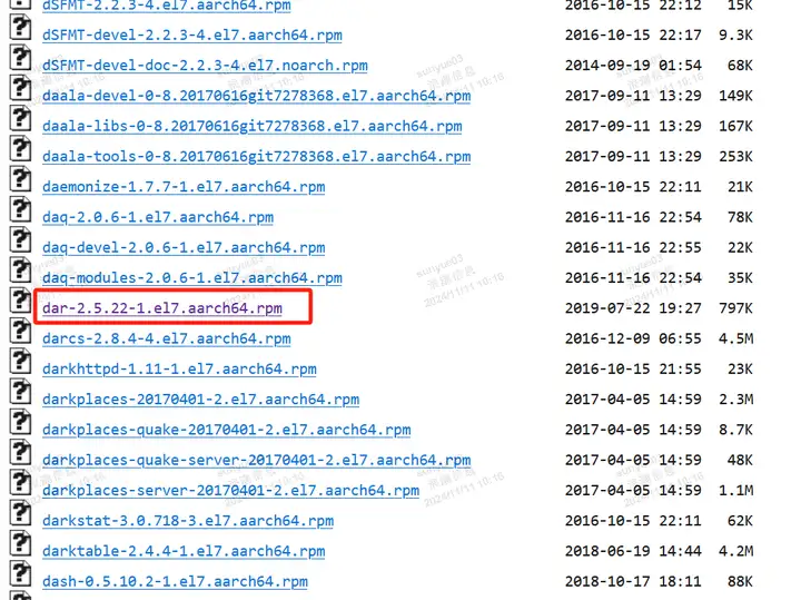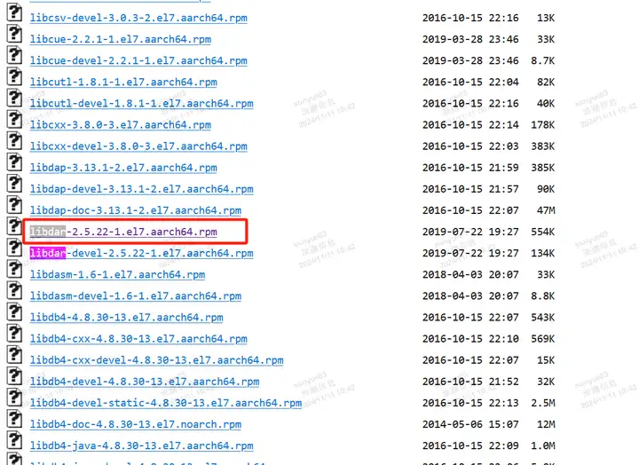在https://archives.fedoraproject.org/pub/archive/epel/7/aarch64/Packages/l/下载libdar的rpm包
