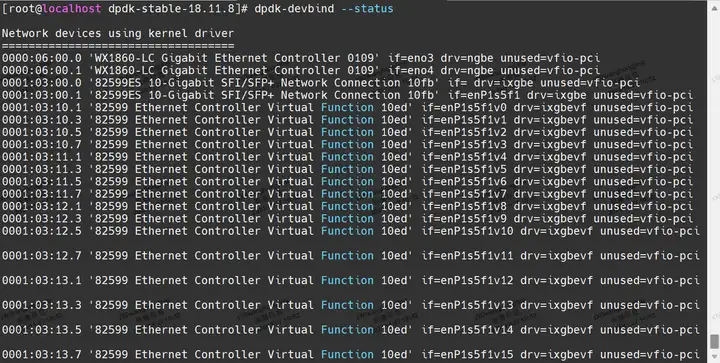dpdk-devbind 是 dpdk-tools 中最常用的工具之一,用于检查和管理网卡的驱动绑定,检查当前网卡状态