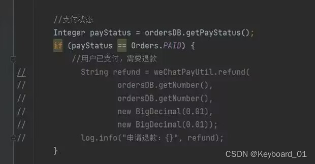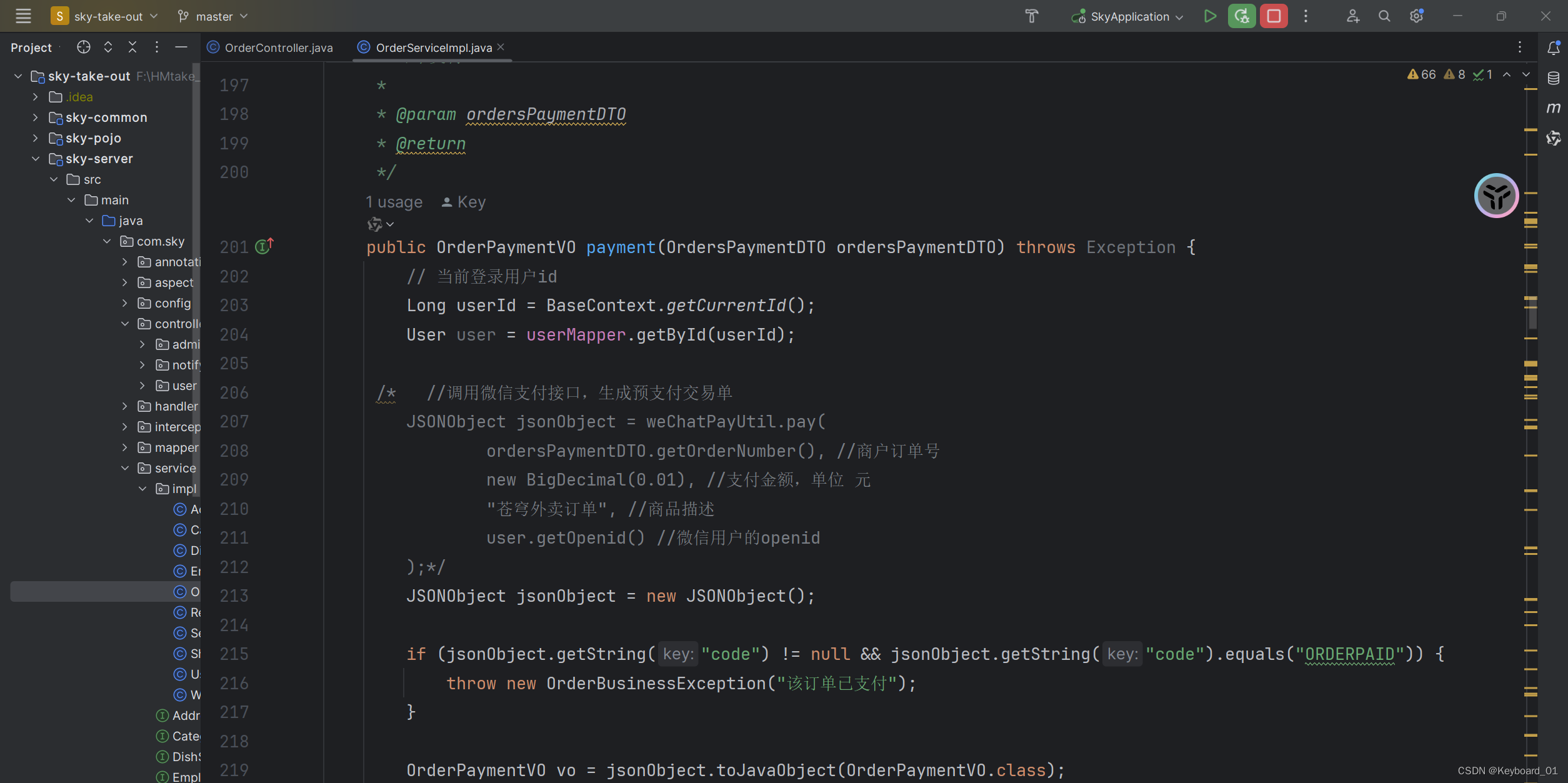 2. 修改OrderServiceImpl,payment的代码: