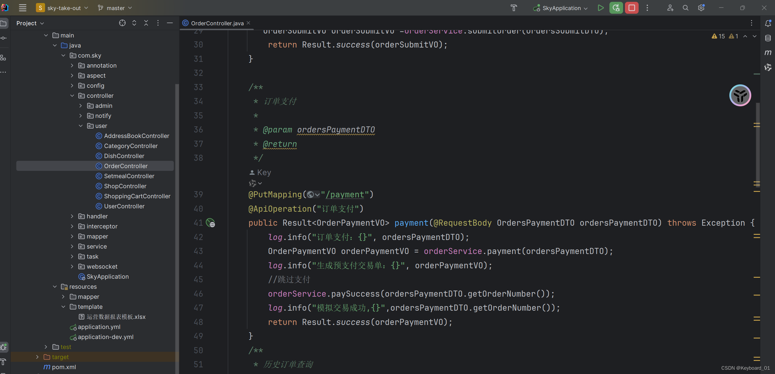 1. 后端在idea中修改OrderController的部分代码:
