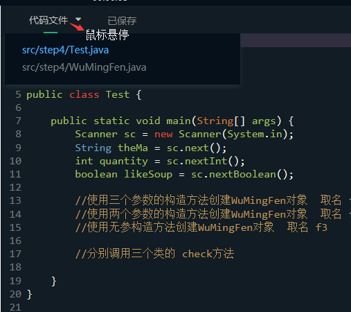 WuMingFen.java,另一个是Test.java,你需要切换文件在两个文件中编写代码来完成本关任务。为“无名的粉”写一个类: