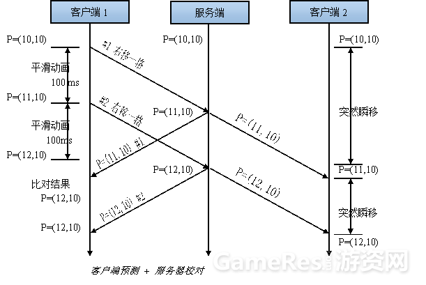 以玩家的角度看,他按了两次右方向键,角色向右移动了两格,站在那50毫秒后又跳回左边一格,停了100毫秒后再次跳到右边。这显然是无法接受的。