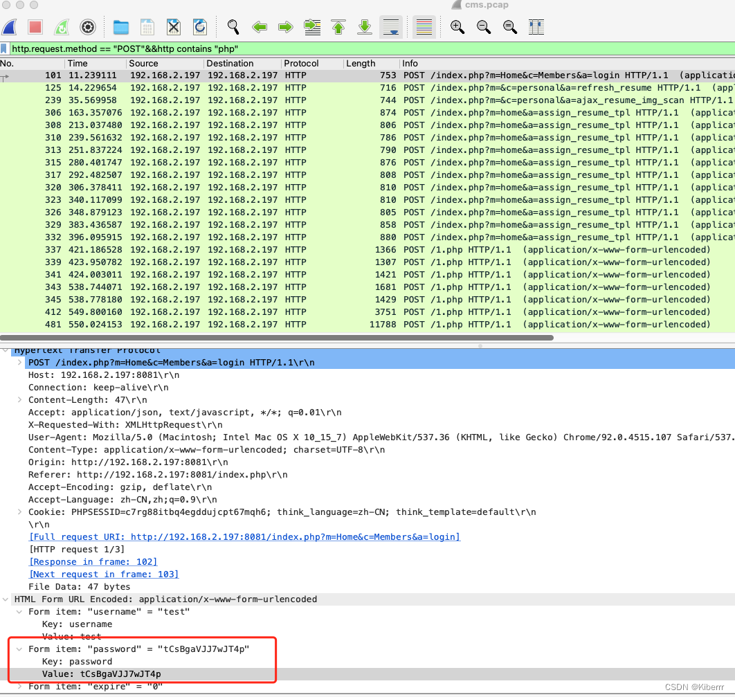思路:http.request.method =="POST" && http contains "php"点击第一个,查看到密码: