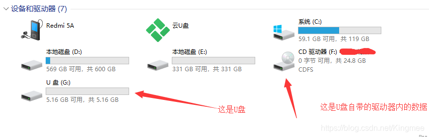 像这种(见下图)U盘自带的CD驱动器内的数据是不能直接删除的,也删除不了,自己也是在网上查了很多资料,现在来总结一下自己的删除经过。