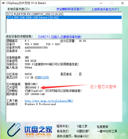 根据自己的芯片型号选择自己的量产工具。我的型号就是SM3268AB,然后在找自己对应型号的量产工具。
