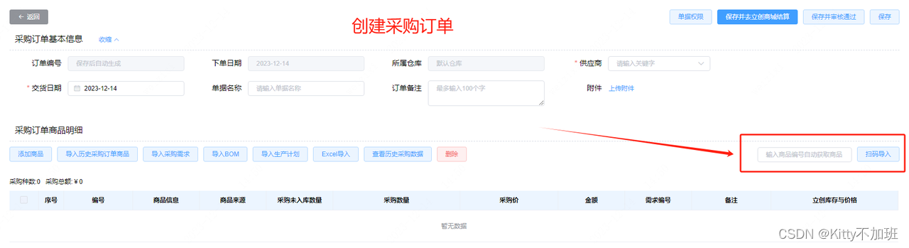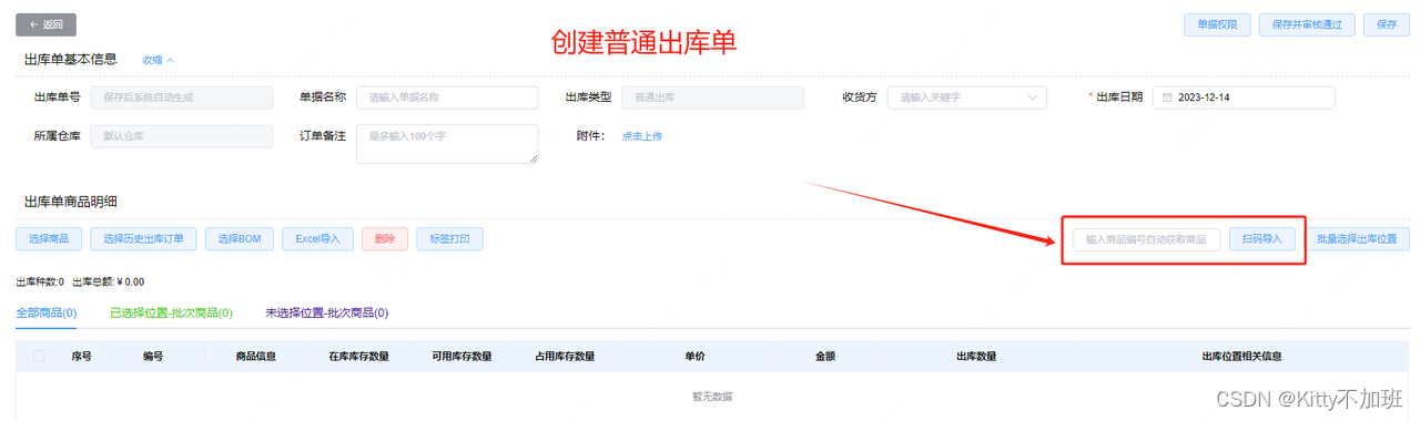 电脑网页端:点击表单中“扫码导入”前面的方框(方框变蓝色即为可扫码状态),再用扫码枪对着标签扫一下即可