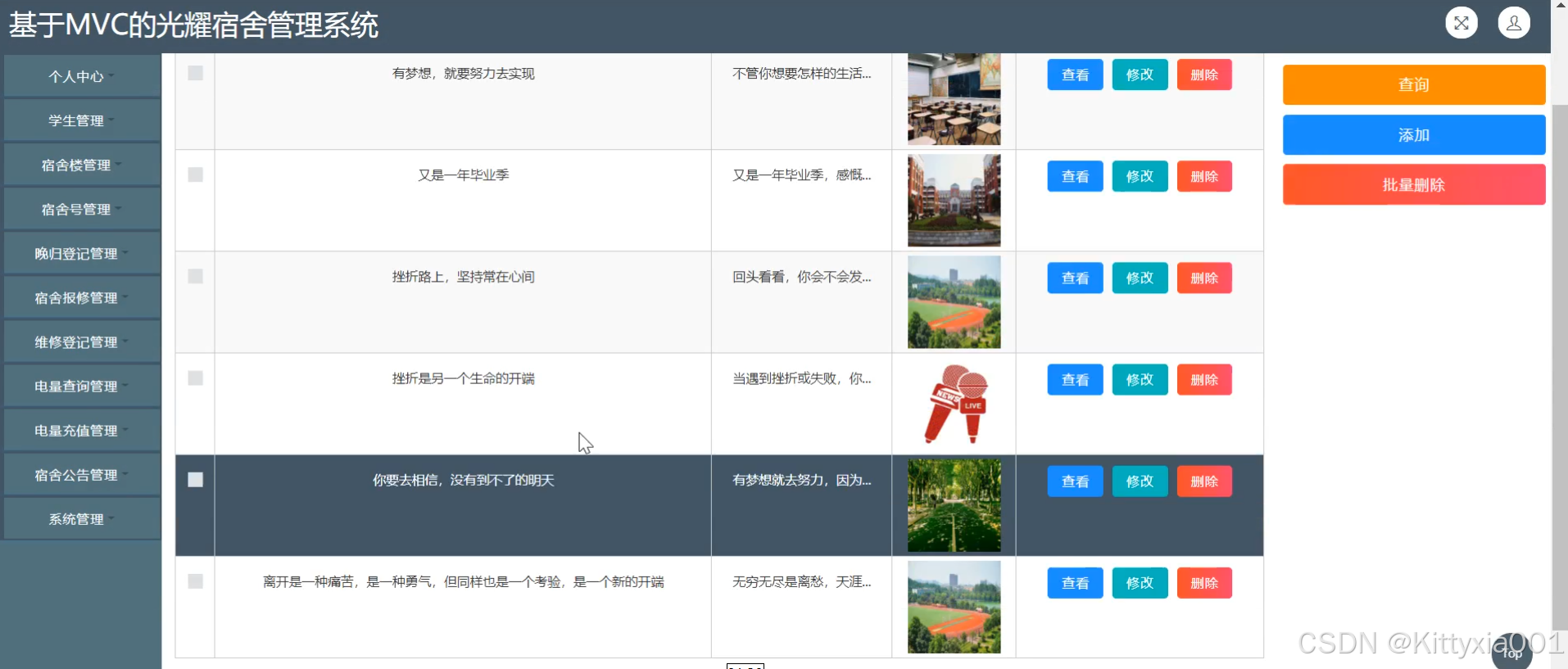 随着高校规模的不断扩大,宿舍管理成为学校日常运营中不可或缺的一环。传统的人工管理方式已难以满足高效、准确、便捷的管理需求。因此,开发一套基于MVC(Model-View-Controller)模式的光耀宿舍管理系统显得尤为重要。该系统旨在通过信息化手段,实现宿舍信息的集中管理、快速查询、智能分配及安全监控等功能,提升宿舍管理的效率和服务水平。