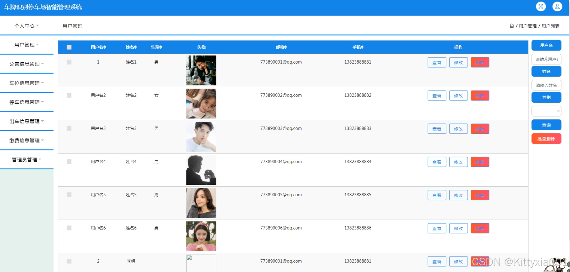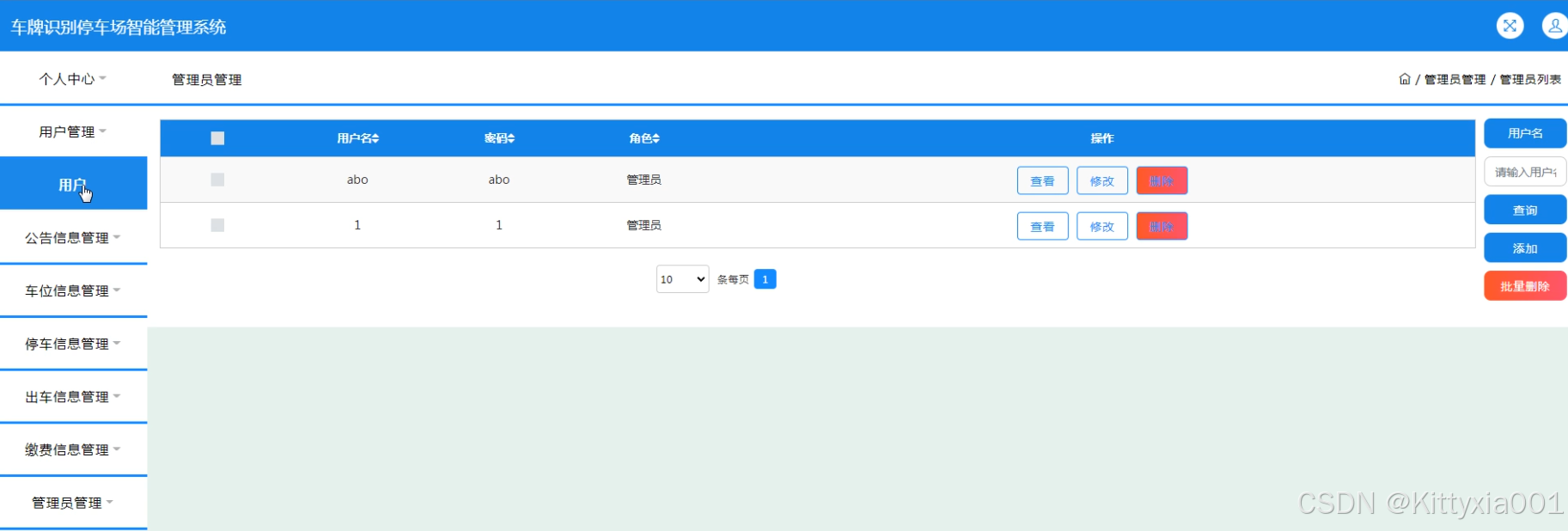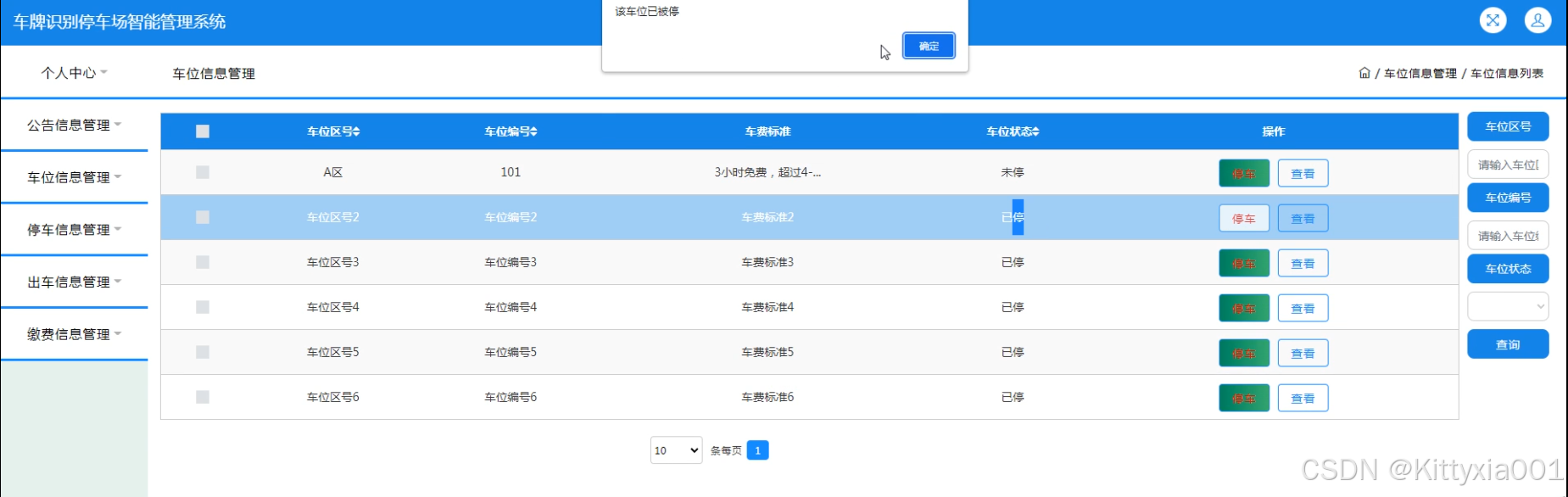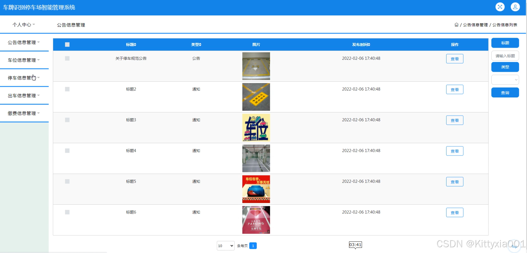 系统功能:用户,公告信息,车位信息,停车信息,出车信息,缴费信息