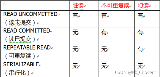 3.幻读:对于两个事务T1,T2;T1从一个表中读取了一个字段,然后T2向该表中插入了一些新行。之后T1再次读取同一个表,就会多出几行。
