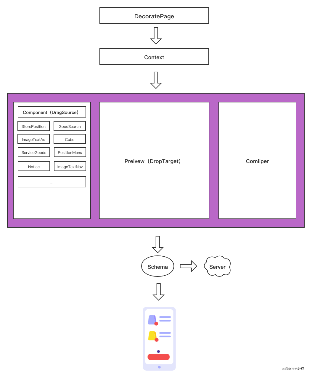 通过上面的设计结构图可以看出PC端最后会生成一份 schema 数据存储服务端,移动端从服务端获取到 schema 数据进行解析。数据格式如下: