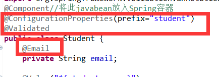 我们给Student实体类添加一个属性email,并且带上@Email注解,和@Validated注解。