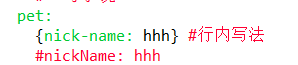 如果大家了解驼峰命名法,就很好理解,我们在实体类Pet中设置了一个String类型变量叫做nickName,但是在配置文件中我们可以写成nick-name,把有大写的地方换成小写,在前面加上一横杠。这就是松散语法。在.yml和.properties中都可以使用。但是在@Value注解中是不能使用的。