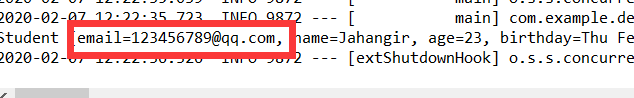 在配置文件中,我们设置email的值为123456,运行看一下结果。