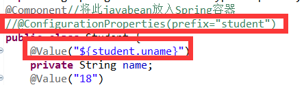 这样子我们就不会引用配置文件里已经赋予好的属性值了,我们通过@Value的方式进行注入。