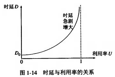 ②当网络的利用率接近最大值1时,网络时延趋于无穷大。
