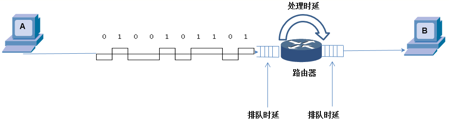 ②处理时延:路由器或主机在收到数据时,要花费一定时间进行处理(如分析数据包首部、差错检验、选择路由等),就会产生处理时延。