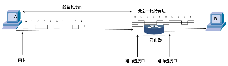 (2)传播时延:电磁波在信道中传播一定的距离需要花费的时间,即从最后一比特发送完毕到最后一比特到达路由器接口所需要的时间。