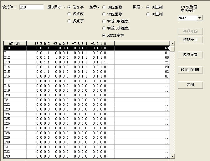 C.读取的内容为:D10低、D10高、D11低、D11高.........