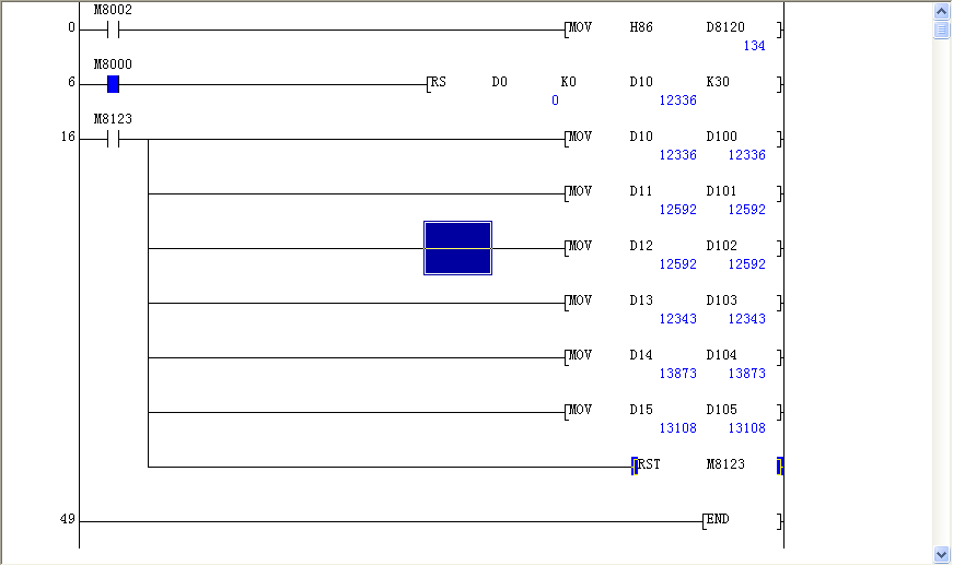 RS指令:A. D8120为通讯控制方式设置,不知道为什么三菱在“FX参数设置”里面设置了通讯设置后还要在代码里面写。