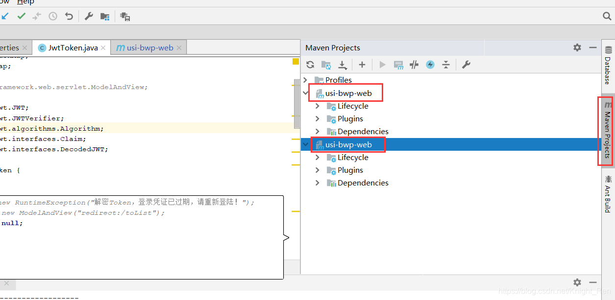 IDE 的maven projects模块出现两个一样的项目生命周期