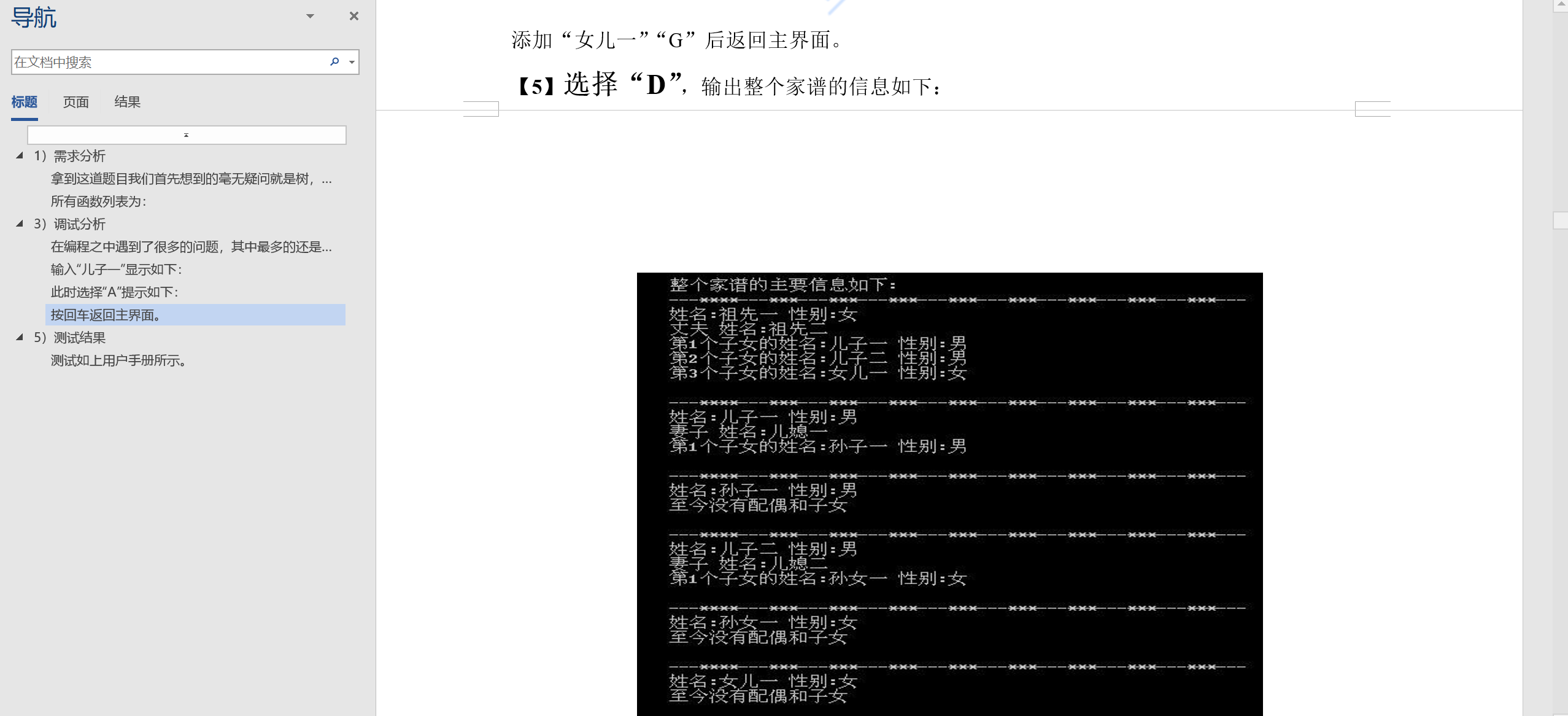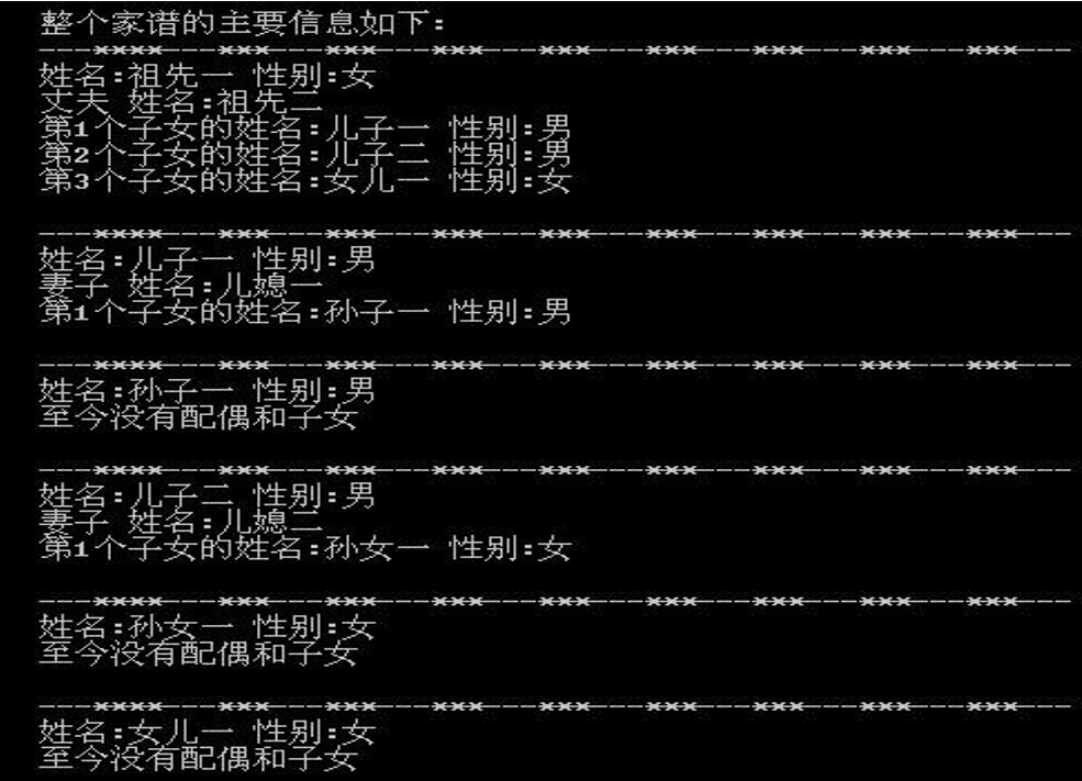 --------------D:输出整个家谱信息----------------------------