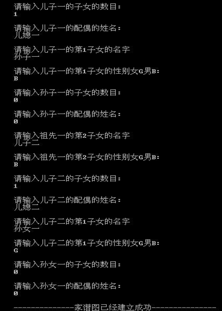 --------------A:输入家谱信息建立多叉树----------------------