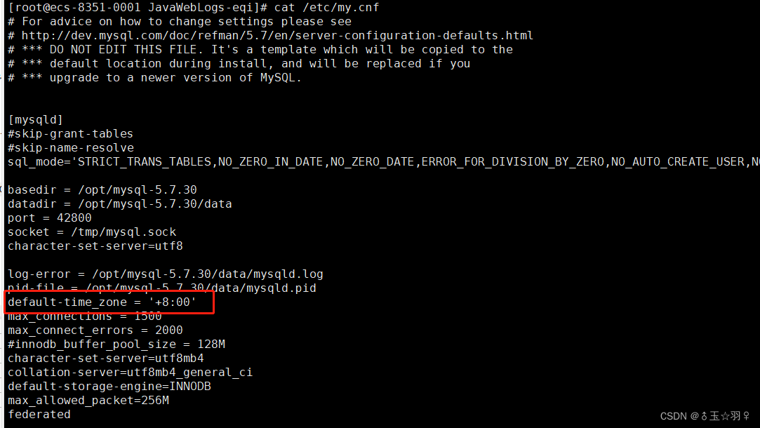 修改mysql的配置文件,增加default-time_zone配置后,重启mysql