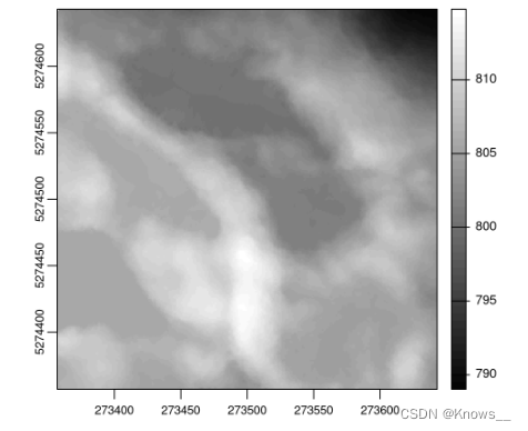 #索引 sf::st_coordinates(ttops)[, 1],我们提取了这些坐标中的第一列,即 X 坐标