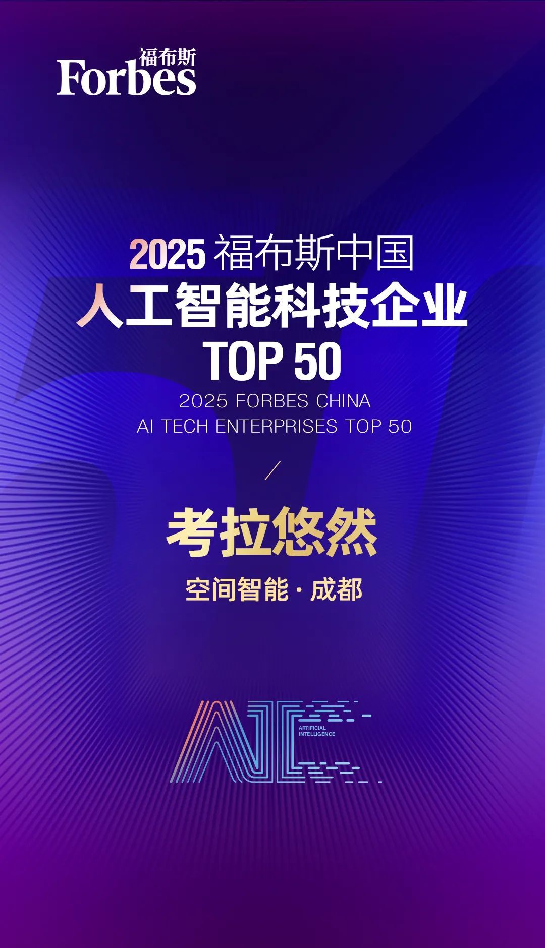 近日,“2025福布斯中国人工智能科技企业评选”结果正式发布。考拉悠然凭借在“空间智能”领域优秀创新技术实力和AI行业落地应用能力荣登“2025福布斯中国人工智能科技企业TOP 50”榜单。同济大学计算机学院院长、考拉悠然/上海码极客创始人申恒涛荣登“2025福布斯中国人工智能影响力人物”榜单。