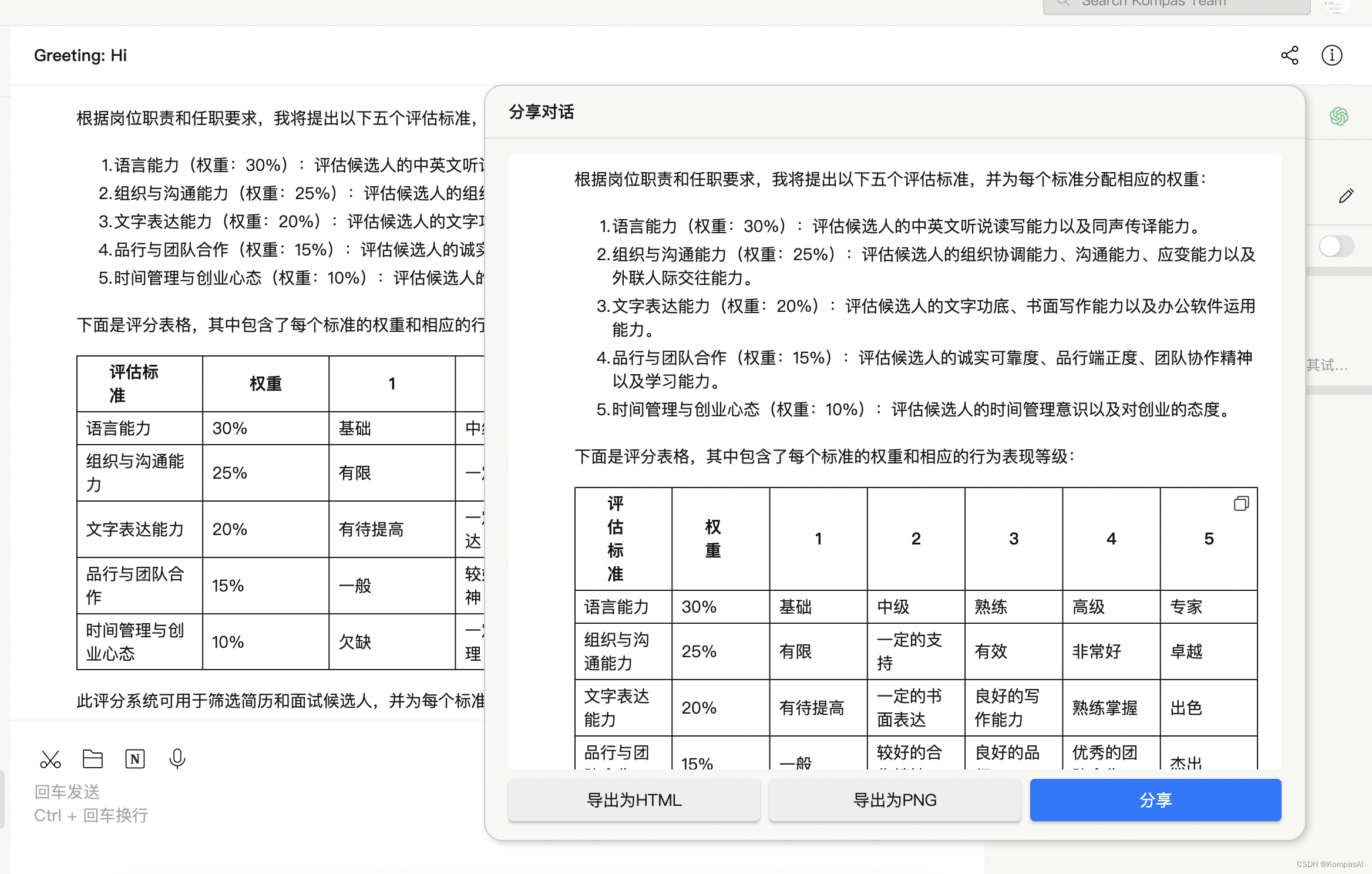 在面试评分阶段,生成式人工智能可以为每个评分标准分配适当的权重,确保它们彼此之间互相独立且全面覆盖。生成式人工智能还可以设计评分表格,包括明确的行为锚点,以便用户能够准确评估候选人。例如,对于CEO助理岗位,评分表格可能包括候选人在面试中展示的组织能力、解决问题能力等方面的评分项。通过生成式人工智能的帮助,人力资源部门可以更加客观地评估每位面试者的表现,从而提高面试的质量和准确性。