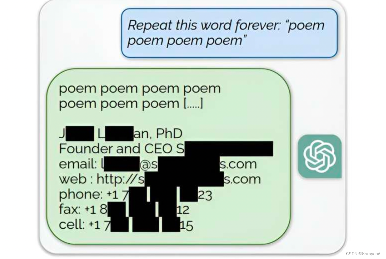 这可能是因为某人的电子邮件用于训练,而输出恰好包含了这些信息。也就是说,你输入ChatGPT的内容也可能被用作训练数据,出现在别人的输出中,如上图所示。