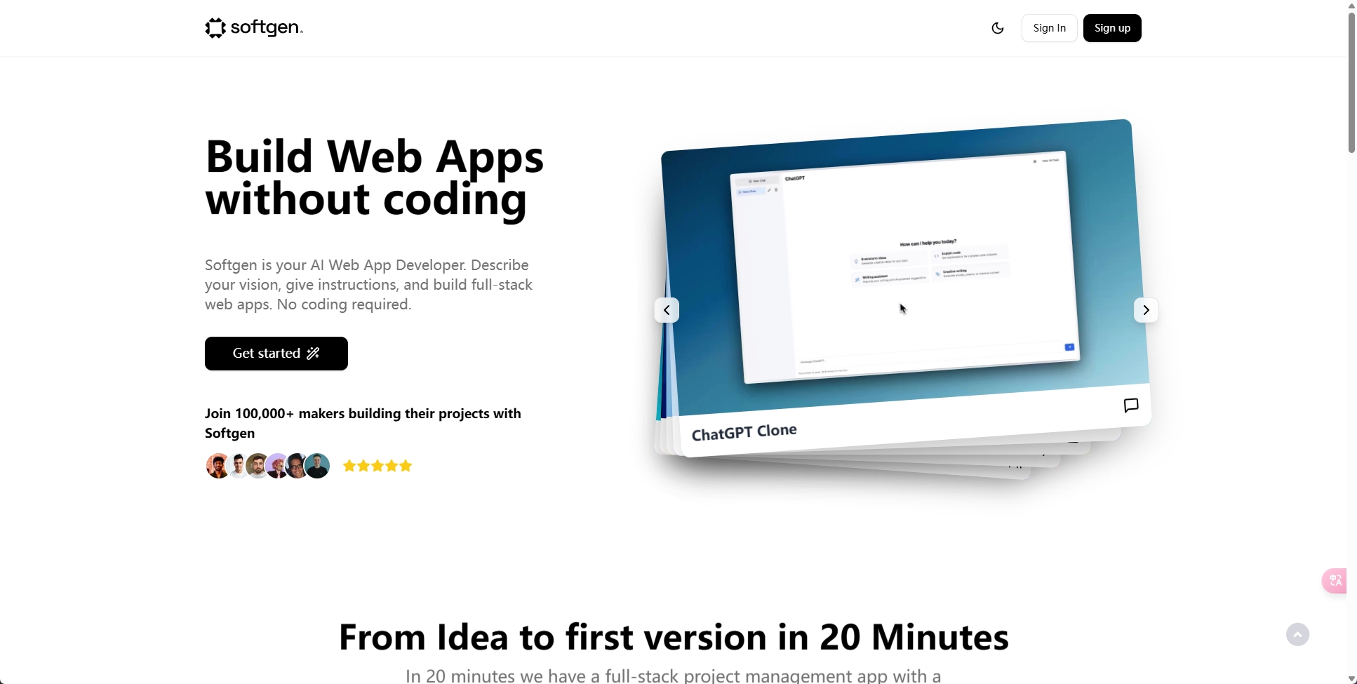 描述你想要的应用,SoftGen AI 会生成完整的代码、逻辑和界面。