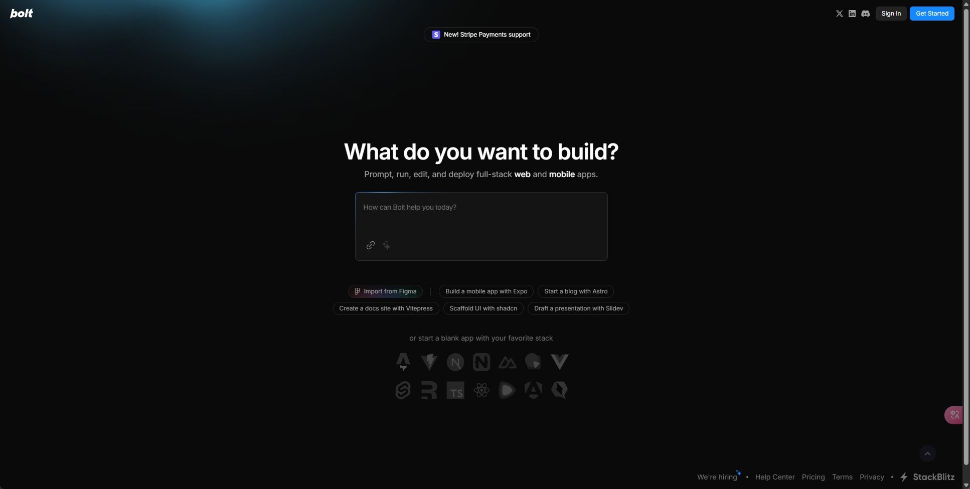输入你要构建的内容, AI 会将其转换为一个真正可用的网页应用,带有工作代码、逻辑甚至后端。