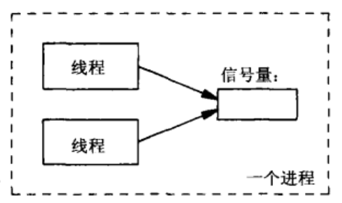 下图是一个进程中两个线程共享一个基于内存的信号量。
