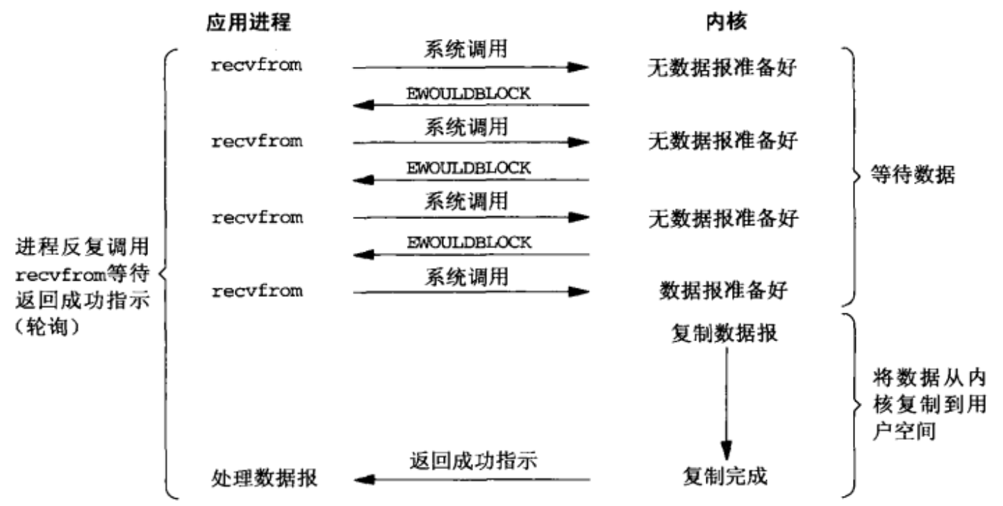 如果大家能够理解阻塞 I/O 模型的话,那么非阻塞 I/O 估计也能想到了。