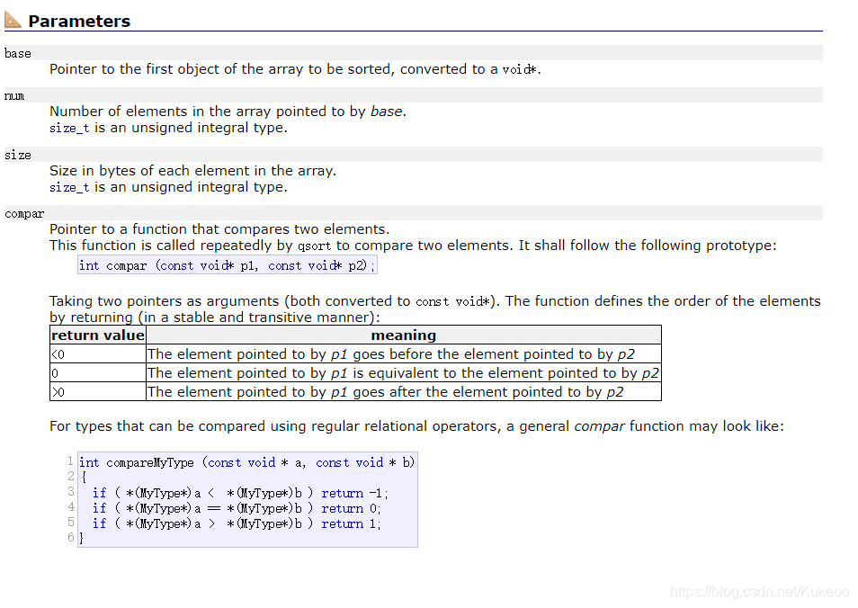 这里给出c++官网的qsort函数说明: